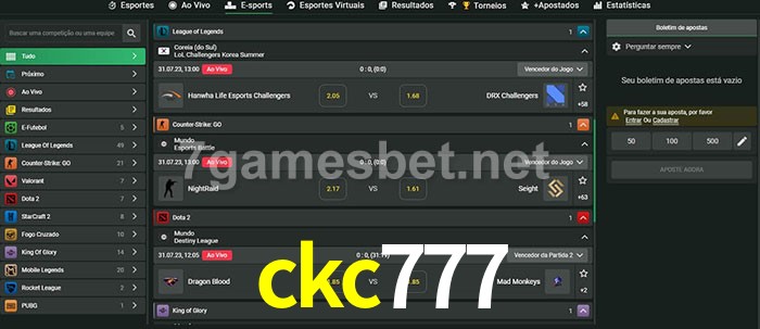 O ckc777 oferece uma grande seleção de opções de apostas em e-sports com probabilidades competitivas